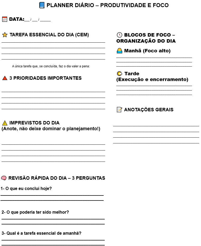 📘 PLANNER DIÁRIO – PRODUTIVIDADE E FOCO